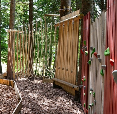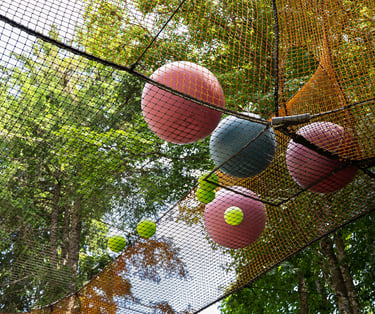 Venez découvrir notre Parc de l'Écureuil sur le site de Font d’Urle. Vos enfants seront heureux de pouvoir escalader et grimper en hauteur en toute sécurité !